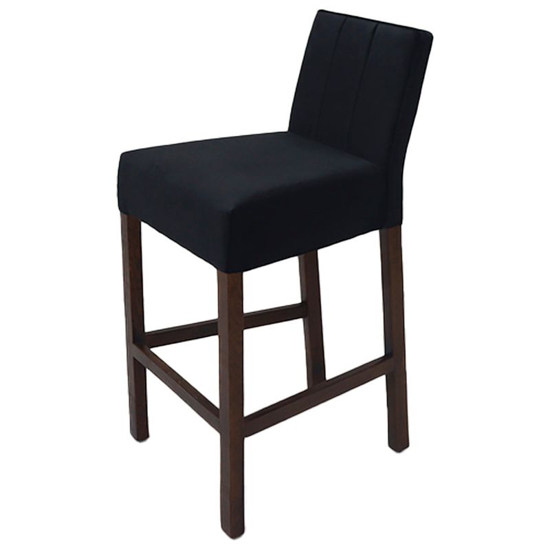 Banco alta Proimsa color Nogal modelo Aylan, tapizada en tela negra, patas nogal y patas altas