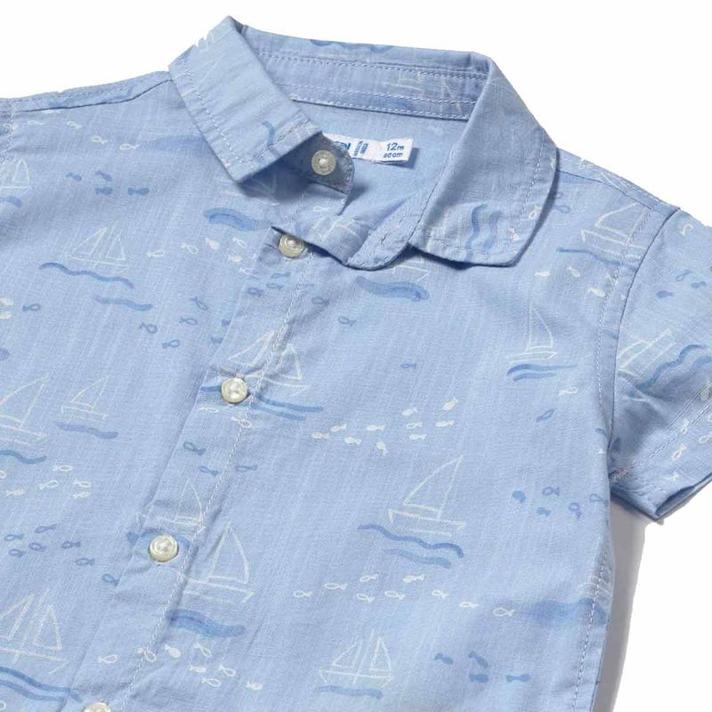 Camisa de manga corta para bebé. Cierre con botones en la parte delantera. Diseño estampado.