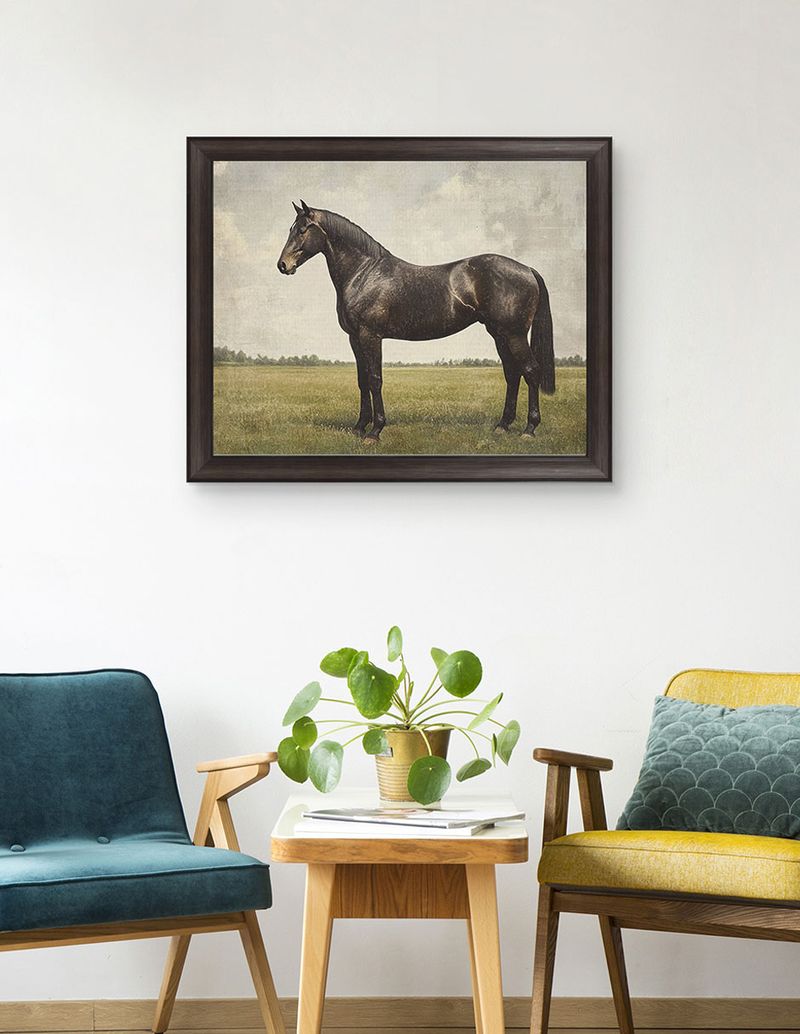 El marco Premier en acabado negro expreso aporta un acento audaz y refinado, realzando la escena sin restarle serenidad y garantizando una presentación de estilo galería.