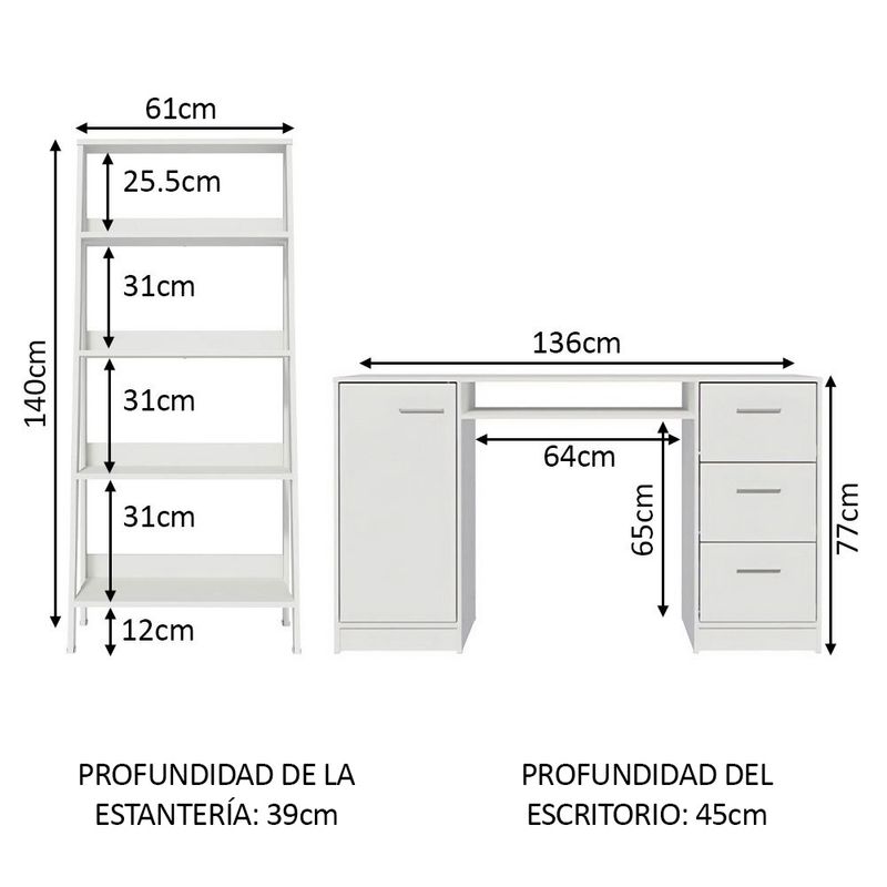 El conjunto Escritorio Alaska + Mueble Estante Librero hará que el entorno de tu despacho o estudio en casa sea mucho más acogedor y organizado.