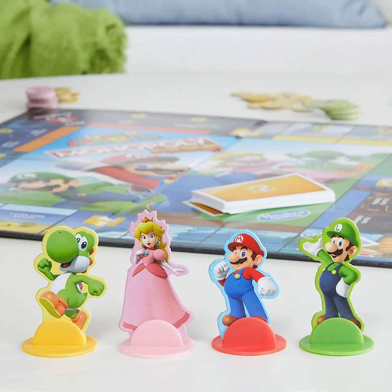 Es esta versión del Monopoly Junior, los niños pueden imaginar que exploran el Reino Champiñón en un juego cuyo diseño, temática y reglas se basan en Super Mario.PERSONAJES DE SUPER MARIO: Los jugadores recorren el tablero como Mario, Peach, Yoshi o Luigi comprando propiedades y recolectando monedas. El jugador que tenga más monedas es el ganador.