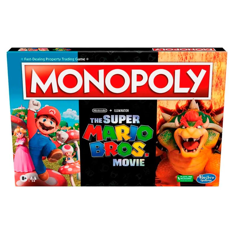 Con el juego de mesa Monopoly basado en la película The Super Mario Bros., los fans podrán explorar el Reino Champiñón, mientras compran, venden e intercambian lugares del universo de Super Mario. Disfruta del diseño, los personajes y temas de la película del icónico Mario. Las monedas de oro reemplazan el dinero Monopoly en este juego en el que se compite para conseguir la mayor cantidad de monedas para ganar. Gana aún más al poseer propiedades del mismo color. Pero cuidado con Bowser, ya que puede intercambiar propiedades, robar monedas y enviar a los jugadores a la cárcel. Descubre los atajos de las Tuberías de Teletransporte y consigue o pierde monedas con los Bloques de Moneda y las Plantas Piraña. Los juegos de Super Mario son emocionantes regalos para niños, niñas, jugadores y fans de Mario y Monopoly a partir de 8 años.