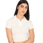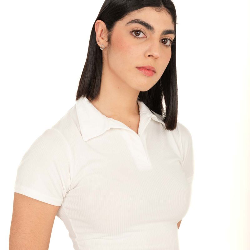 Top corto con cuello polo y manga corta presenta un fit ajustado que realza tu figura. Su diseño versátil combina con jeans o faldas, ofreciendo múltiples opciones de estilo. Además, su tejido transpirable y suave al tacto garantiza comodidad, haciendo de este top una pieza esencial en tu guardarropa.