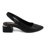 Zapatilla lisa, tacón bajo ancho de 4 CM con aplicación cromada, color negro.* Confort en plantilla * Zapatilla de tacón bajo de 4 CM * Aplicación cromada en tacón * Lisa para usarse en ocasiones formales.